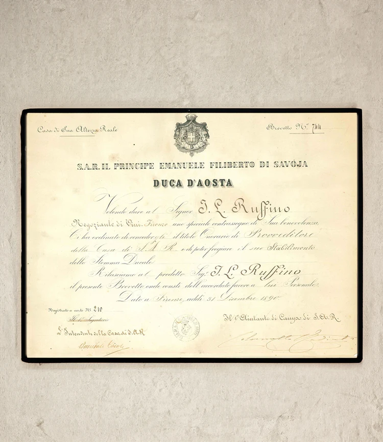 Doskonałość Riserva Ducale rozprzestrzenia się, przyciągając uwagę Królestwa Włoch. Wino intryguje konesera Duca di Aosta, który odwiedza Pontassieve w 1890 roku. Dzięki temu Ruffino zostaje oficjalnym dostawcą Królestwa.